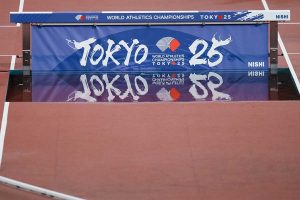 2025.09.21陸上の世界選手権東京大会は21日、国立競技場で最終日を迎えた。午後9時20分号砲の男子4×100メートルリレー決勝が大会最終種目になるはずだったが、雨の影響で中断があった男子円盤投げが最終種目に。競技が終了したのは午後11時6分だった。