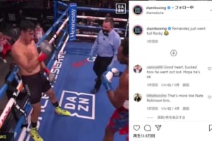 2020.12.22ボクシングの衝撃KO負け直前に見せた挑発行為が話題を集めている。米テキサス州で19日(日本時間20日)に行われたヘビー級10回戦でジュリアン・フェルナンデス(メキシコ)がフランク・サンチェス(米国)に7回TKO負け。ダウン時にロープの隙間をすり抜けてリング外に放り出される形で敗れたが、試合中は強気で再三挑発。実際の動画に対し、米ファンから「これはおバカさんだ」と声が上がっていが、「彼はピエロか?」「ある意味伝説」と反響が拡大している。