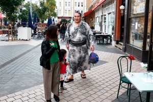 大相撲力士のロンドン出没、市民は驚き「まるで夢のようだと…」 電話BOXぎゅうぎゅうも目撃