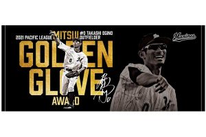 2021.12.20プロ野球・ロッテは球団オンラインストア限定で、荻野貴司外野手と中村奨吾内野手の「2021年度三井ゴールデン・グラブ賞」受賞を記念したグッズの受注販売を開始した。期限は12月26日まで。