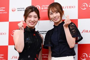 女子ゴルフ安田祐香、お洒落なシースルー衣装でパシャリ 高校先輩・植手桃子と仲良く2ショット