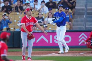 2025.03.01米大リーグ・ドジャースの大谷翔平投手は2月28日(日本時間3月1日)、米アリゾナ州グレンデールでエンゼルスとのオープン戦に「1番・DH」で今季初出場した。その第1打席、相手先発の菊池雄星投手から左翼へオープン戦1号。古巣エンゼルスに対し、米番記者から痛感した様子の声が上がっている。