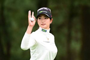 原英莉花、ミニスカ&ルーズソックス風「かわいいウェア」で魅了 「27歳頑張ります」12アンダーで4位