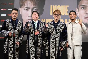 2025.09.12ボクシングの世界スーパーバンタム級4団体統一王者・井上尚弥(大橋)が12日、名古屋市内で会見を行った。14日に同市のIGアリーナでWBA世界同級暫定王者ムロジョン・アフマダリエフ(ウズベキスタン)との団体内統一戦を行う。会見後にはアフマダリエフが井上陣営に民族衣装をプレゼント。決戦2日前に一時友好ムードが漂ったが、大橋秀行会長の警戒心はむしろ強まっていた。