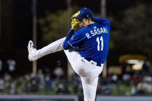 2025.03.05米大リーグ・ドジャースの佐々木朗希投手は4日(日本時間5日)、米アリゾナ州グレンデールで行われたレッズとのオープン戦で、5回からドジャースに移籍後初登板。この回は1安打、1死球でピンチを作りながらも2つの三振を奪い無失点。2イニング目も得点圏に走者を背負ったが得点を与えなかった。3イニング目で初の3者凡退とするなど、デビュー戦は46球で3回2安打無失点5奪三振、2四死球と結果を残した。