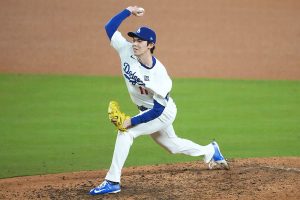 佐々木朗希がワールドシリーズ初登板 同点の8回にマウンドへ ピンチ脱出も冷や汗送球に苦笑い