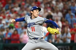 2025.10.07米大リーグ・ドジャースの佐々木朗希投手は6日(日本時間7日)、敵地で行われたフィリーズとの地区シリーズ第2戦に登板した。1点差に迫られた9回2死、ピンチの場面でマウンドへ。首位打者トレイ・ターナーと対戦した。二ゴロに打ち取り、2戦連続でセーブを挙げた。4-3で勝ったドジャースは2連勝。地区シリーズ突破に王手をかけた。ただ、イニング頭から起用されず、その間に1点差に迫られる展開。ネット上では采配に困惑の声も上がった。