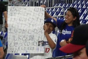 2025.05.07米大リーグ・ドジャースの大谷翔平投手は6日(日本時間7日)、敵地マーリンズ戦に「1番・DH」で出場。マイアミのローンデポ・パークには、創意工夫を尽くして大谷へ愛を伝えようとするファンが登場した。10歳のホセ・ヌニェス・ガルシアくんはGoogle翻訳に頼りながら日本語でメッセージをしたためた。