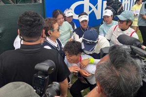 2025.05.11国内女子ゴルフのメジャー初戦・ワールドレディスサロンパス杯最終日が11日、茨城GC東C(6675ヤード、パー72)で開催され、首位で出た藤田さいき(JBS)が2バーディー、3ボギー、1ダブルボギーの75で回り、通算7アンダー。首位で並んだ申ジエ(スリーボンド)とのプレーオフ(PO)に敗れて優勝を逃した。試合後はグッタリし、関係者に背負われて退場。その後、救急車で搬送された。優勝した申は会見で藤田を心配しながら、「一人じゃなく一緒に頑張りたいと思いました」などと振り返った。